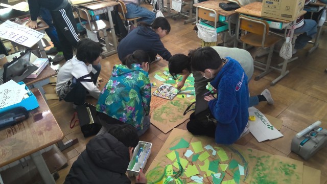 総合の学習で、桂川万博を開くことを計画しています。今まで学習してきたSDGsの知識を生かして自分たちでアイデアを出しながらパビリオンを作っています。どんなパビリオンになっていくのか楽しみです。