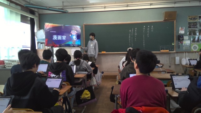 国語科「今、私は、ぼくは」の単元で将来の夢をテーマに、発表をしました。自分の発表の手助けとなるような資料もパワーポイントで作り、それを活用しながら自分の思いを伝えることを頑張りました。見やすさを意識した資料や、なるべく前を向いて話そうとする姿がステキでした。