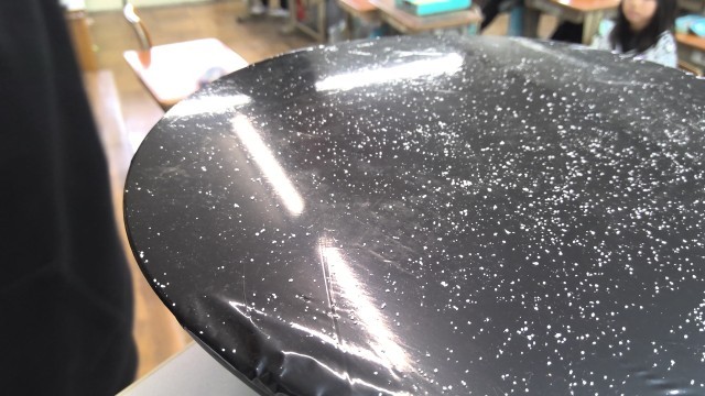 最後は、声や音の震えで、塩が動く実験ではみんな驚きの声を