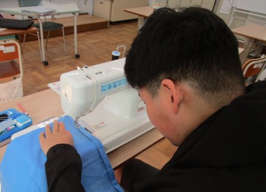 5年生はランチョンマットを、6年生は家で使う製作用マットを作りました。