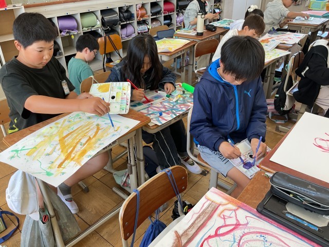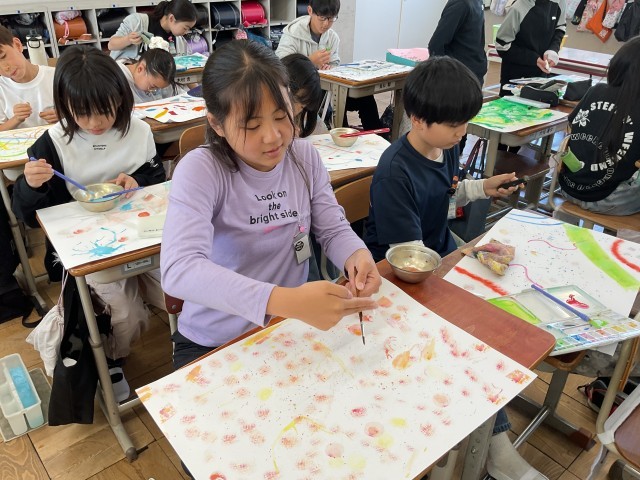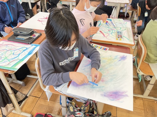 いろいろな表現方法を使って思い思いの作品を楽しく制作しています。