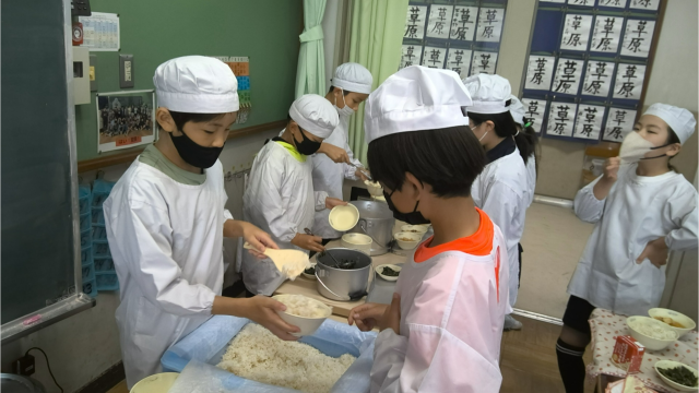 5年 給食当番頑張っています