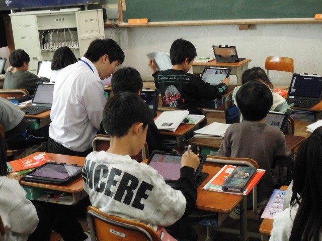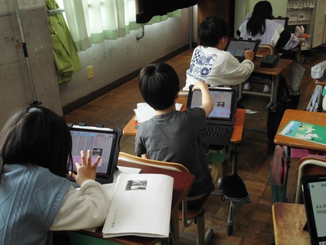 3年生 国語では、物語の登場人物の気持ちを、タブレットに入力し提出する、ということをしていました。