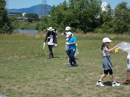 今月は,5年生が桂川河川敷に来てくれ,多くのPTAや地域の方々と協力して清掃活動をしました。
