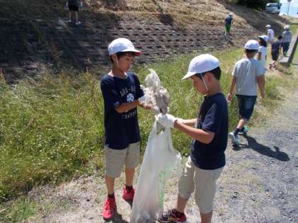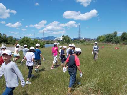 5年生は,桂川の河川敷をそうじしました。自分たちの地域がきれいになると気持ちが良いですね。これからも,ぴかぴかの桂東になるように,みんなでがんばりましょう。
