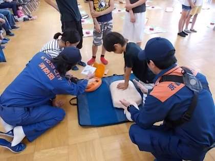 6年生は,桂東消防団や西京消防署の方々に,心肺蘇生のやり方等を教えていただきました。