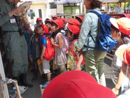 初めにやぎについてのお話を聞きました。やぎは,臆病なので急に走らない,大きな声を出さない,紙を出さないなどの注意を聞いた後,さわったり,えさをやったりしました。ちょっと腰のひけているお友だちもいました。