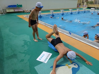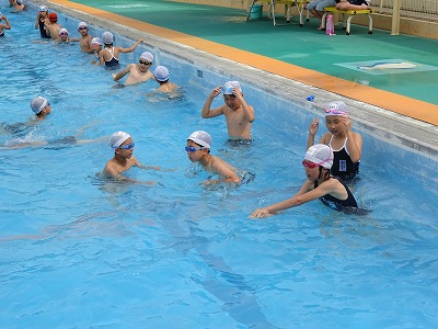 6月上旬から水泳学習が始まりました。気候に恵まれる日が続き,4年生の子ども達は,楽しんで活動を継続しています。