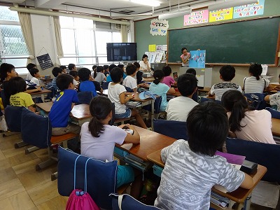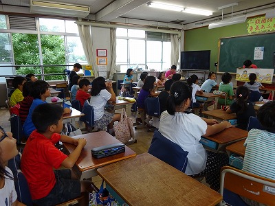 あじさい読書週間では,図書委員による読み聞かせもありました。大型絵本を前にどんな展開になるかを考えながら聞いていた子ども達でした。