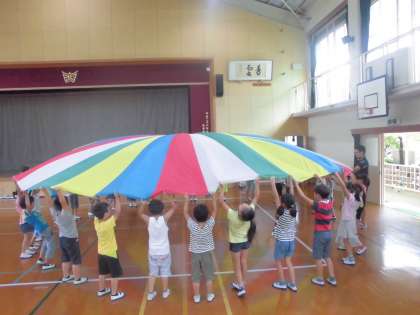 今日は「ともだちの日」で,5組のお友だちと交流しました。5組さんには2年生がいないため,これまでほとんど関わることがなかったので大変貴重な時間となりました。短い時間ではありましたが,一緒に「パラバルーン」をしたり,「まじょのタンゴ」というダンスを踊ったりして楽しみました。