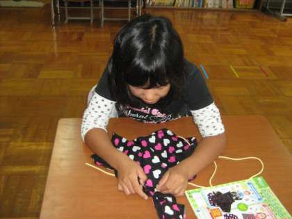 ミシンを使ってぬい,ひもを通して完成!!