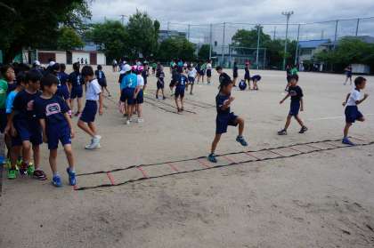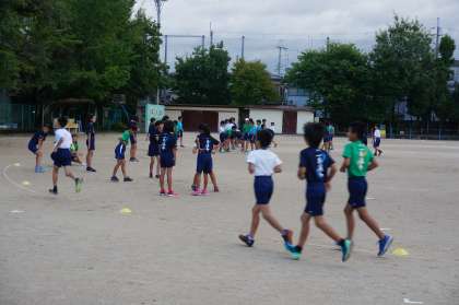 運動場の周囲には少し水たまりが残っていましたが,朝は爽やかな風も吹き,運動するには良い条件でした。