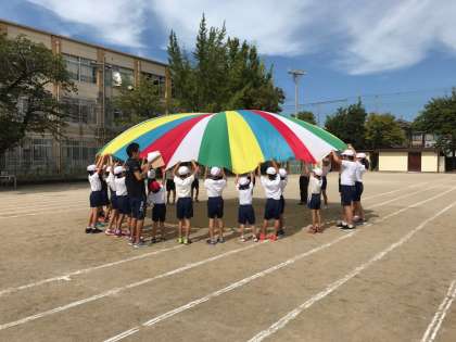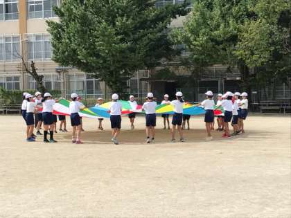 各学級、回を重ねるごとにパラバルーンの膨らみも大きくなりました。また、次回の練習が楽しみです。