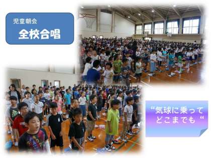 全校合唱は「気球に乗ってどこまでも」を二部合唱で練習しています。11月の学習発表会では,全校できれいな二部合唱をしたいですね。