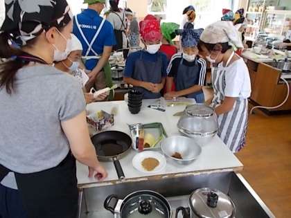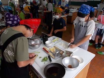子どもたちは真剣に講師の先生方のお話を聞き,調理をしていました。