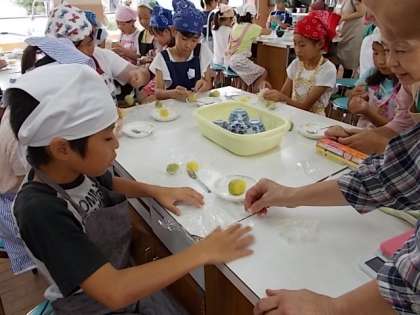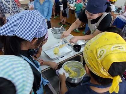 本年度2回目の土曜学習が行われました。今回は,西京食育指導員の方々にお世話になり,「秋の味覚を味わおう」ということで「さつまいもの2色茶巾づくり」をしました。
