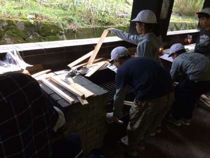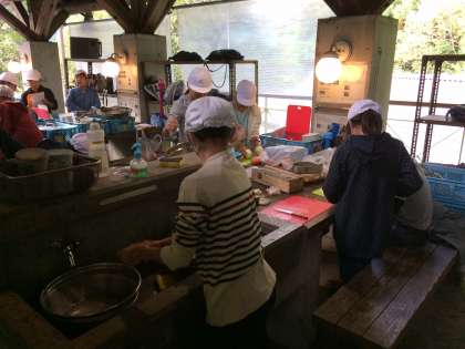 みんなで協力して、カレーを作ります。食材を切ったりかまどを準備したりと頑張っています!
