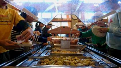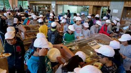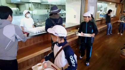 手を洗って順番に用意をしていきます。おかずはバイキングです。