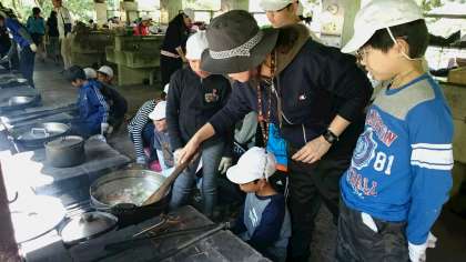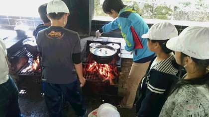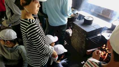 かまどの火の加減も、ずいぶん上手くなってきました。さあ、もう一辛抱です。