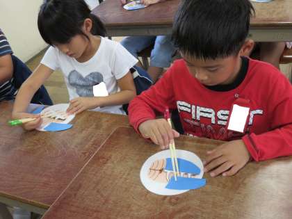 めあては「さかなパワーを見つけよう!」で,初めに「魚クイズ」で魚の事を楽しく知った後,魚の模型を使ってお箸で切り分ける練習をしました。