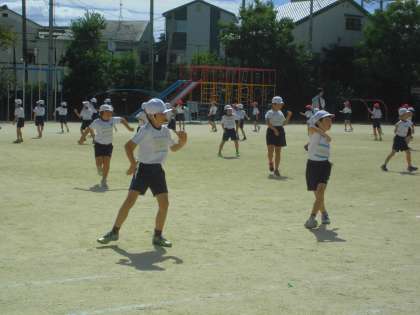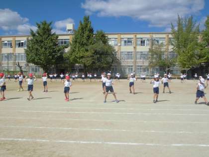 運動会の練習が本格的になっていますが,太陽の光や風に舞う砂などの中,頑張って練習に取り組んでいます。体育と違って,自分の立つ位置が分かりにくい。近くにあるものを見ながら確かめています。