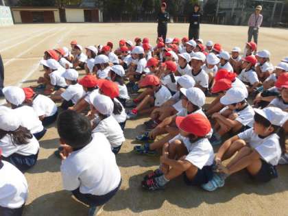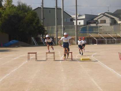 さっそく,運動会の練習に取り組みました。今日は,運動場で障害物競争の練習です。80mほどの距離を走るため,少し疲れ気味の子もいましたが,とんだりくぐったりを楽しんでいました。
