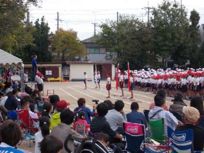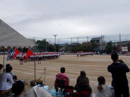いよいよ運動会が始まりました。入場行進をして開会式です。