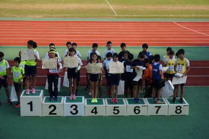 「小学生男女混合400mリレー」は2位,「男女混合800mリレー」は7位,「一般男子400mリレー」は5位と,大人も子どもも好成績を収めることができました。一般男子400mリレーの表彰だけ写真を撮ることができませんでした。選手の皆さん申し訳ありません。