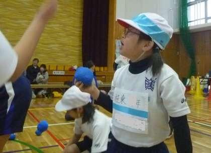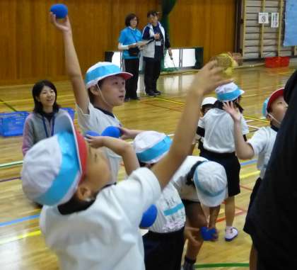 体育館での玉入れは、たぶん初めての子どもたち。