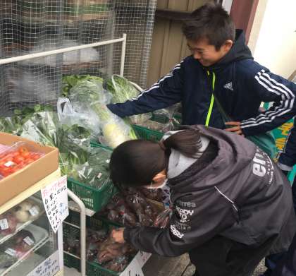 調理実習に向けて,買い物係の人たちで買い物に行きました。事前に計画を立てた材料表を見ながら,必要な量や値段,質などを考えて,買うことができました。