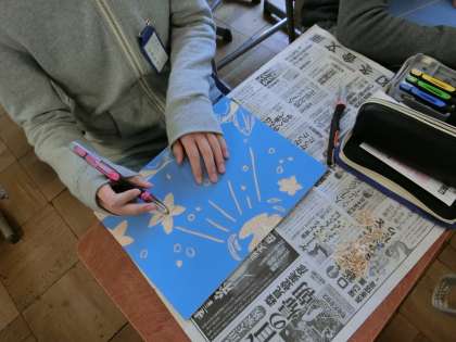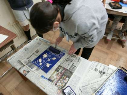 版画も着々と進み,版を刷る作業に入る子が増えました。