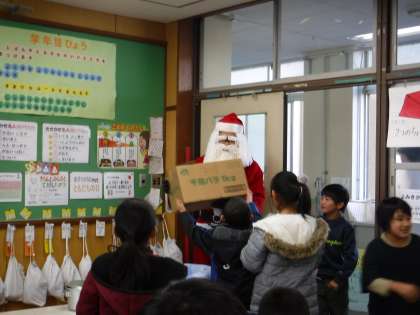 子どもたちは,突然現れたサンタさんに大喜び。