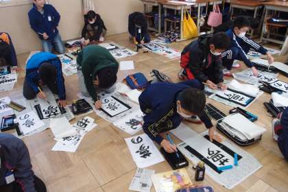 書初めをしました。課題は『夢の実現』です。今年の目標を胸に,丁寧に気持ちを込めて書きました。