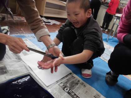 手でするグループは顔にも色がついていたり、夢中でする姿が見られました。