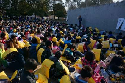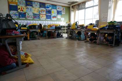 23年前の阪神淡路大震災の後から続いている訓練です。周囲を住宅に囲まれている桂東小学校では,大規模な震災で周囲に火災が発生すると逃げ道がなくなる恐れがあります。
