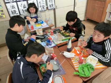 量は小学校の給食と比べるとやや多めで,食べ切るのに苦戦している子もいましたが,全員食べ切ることができました。