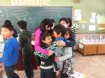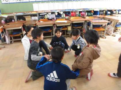 背中に文字をかいて伝言していくゲームやことばの濁音の部分でしゃがむゲーム,新聞紙一枚に全員が乗れるかのチャレンジ,ジェスチャーゲームなど6年生が準備してくれたゲームを楽しんでいました。