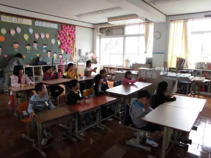 いよいよ明日から給食開始です。給食当番の仕事ややり方・清潔にすることなどを学習しました。