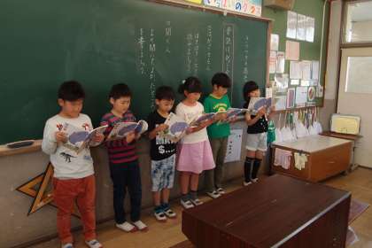 国語では,「きつつきの商売」の音読発表会をしました。どのグループも練習の成果を出し,はきはきとスムーズに読むことができました。身振り手振りをつけて発表するグループもあり,まるで音読劇を見ているようでした。