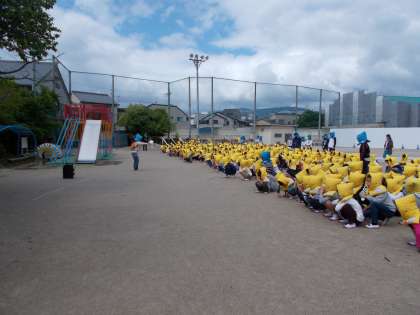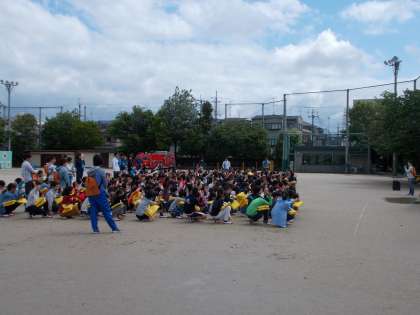 子どもたちは,本番を想定し,静かに避難ができていました。