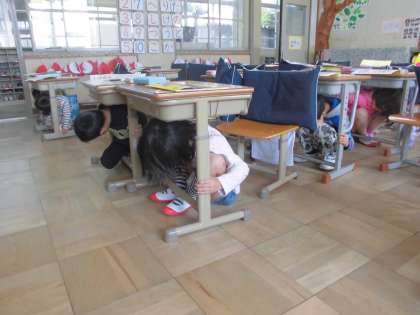 2時間目,初めての避難訓練がありました。防災頭巾のかぶり方,机の下への避難の仕方などを学級活動で学習しました。避難する時の約束「おはしもて」を学習した後,実践しました。保育園や幼稚園で「やったことがある」という子どもたちも多く,1年生みんな指示をしっかり聞いて,静かに安全に避難することができました。訓練を見て頂いた消防署の方々にも褒めて頂きました。
