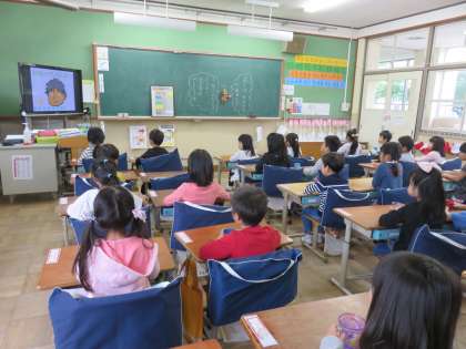 今日から,1年生は本物のお薬でフッ化物洗口を始めました。連休前まで,水でしっかりと練習してきたので,動画を見ながらみんな真剣に実践することができました。
