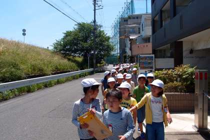 社会の学習で町たんけんに行きました。1回目は,学校から見て東(浅原公園コース)です。今までに気づかなかったお店や建物,田んぼや畑などたくさんの発見がありました。見つけたことをもとに,みんなで地図にまとめ,オリジナルの校区図を作成します。あと2回の町たんけんもどんな発見があるか楽しみです。