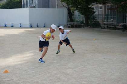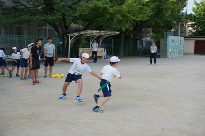 まだまだ始まったばかりですが,子ども達は笑顔一杯で,全力で運動していました。少しずつ技能や戦術が高まることで,タグラグビーの楽しさもどんどん深まっていくと思います。今後が楽しみですね。