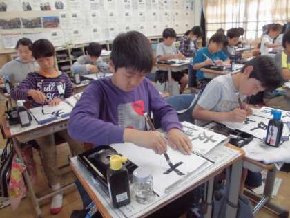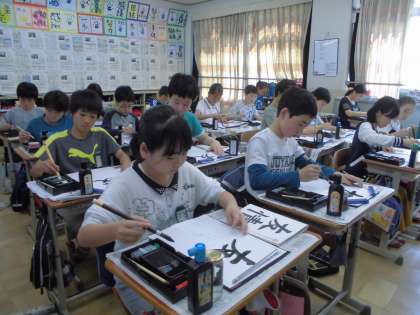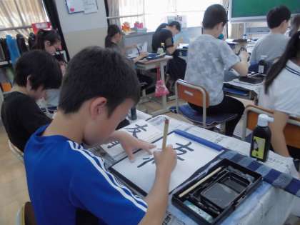 点画のつながりや左右の組み立て方に気をつけて書きました。「いい字を書くぞ!」と集中して頑張りました。