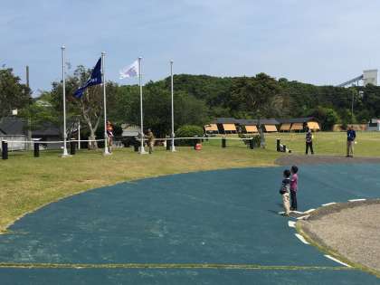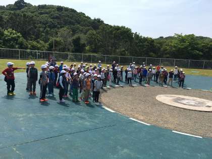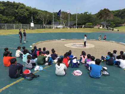 昼食を終え,入所式が行われました。「挨拶,5分前行動・来た時よりも美しく」の決まりを守り,楽しく安全に活動していきます。