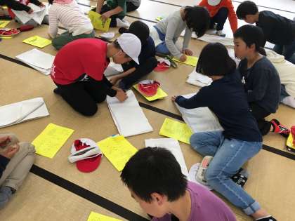 オリエンテーションでは、みさきの家の職員の方からお話を頂きました。今日からお借りするシーツも受け取り、準備に取り掛かります