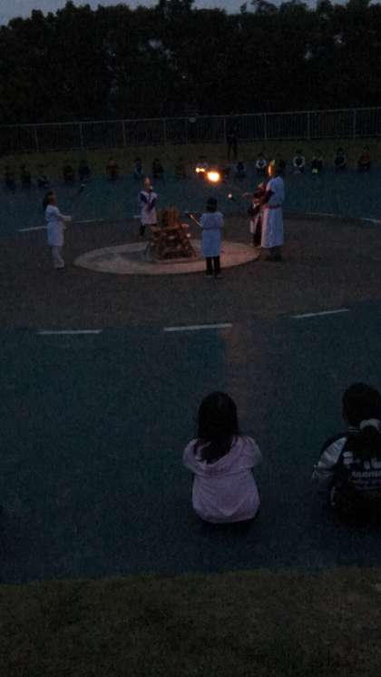 火の神と火の子が登場し,キャンプファイアーに火がともります。