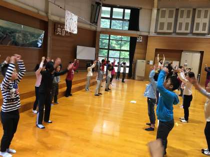 最終日も元気に過ごせるように、朝ダンスを行います。機械の不調で、途中からは自分達で歌いながら最後まで踊りきりました!