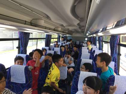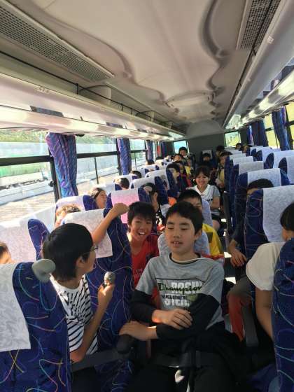 バスの中ではレクリエーションが大盛り上がりでした。終わったあともハイテンションの車内です。